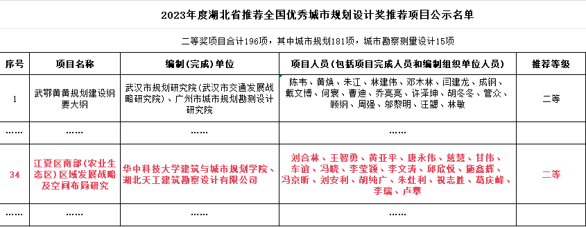 天工設(shè)計(jì)院獲2023年度湖北省推薦全國(guó)優(yōu)秀城市規(guī)劃設(shè)計(jì)二等獎(jiǎng)
