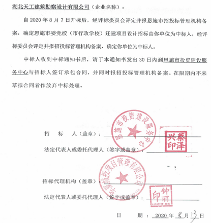 祝賀!湖北天工中標(biāo)恩施市委黨校遷建項目設(shè)計招標(biāo)